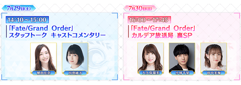 ・7月30日(日)16:00~17:45 「Fate/Grand Order」カルデア放送局 裏SP