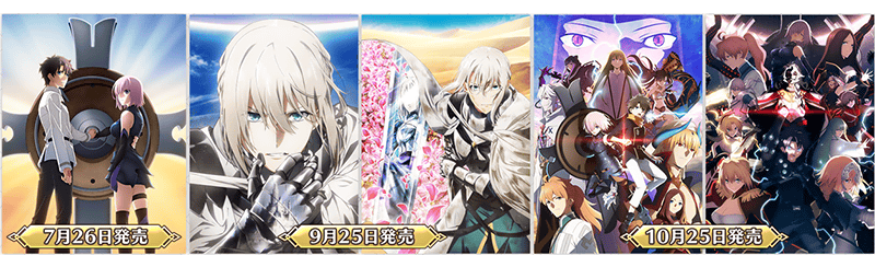 ■Fate/Grand Order -First Order- & -MOONLIGHT/LOSTROOM- Blu-ray Disc Box 発売:2023年7月26日(水) 仕様:本編ディスク2枚組、キャラクターデザイン(MOONLIGHT/LOSTROOM)・永作友克描き下ろし三方背BOX、映像特典(ゲームOP/CM集) 英語吹替(「First Order」のみ)・英語字幕収録 価格:8,800円(税込)