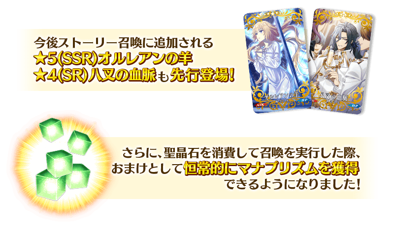 また、2023年7月30日(日) 18:00以降、すべての聖晶石召喚(有償、無償問わず)を実行した際に、聖晶石消費ボーナスとしてマナプリズムを獲得できるようになりました!
