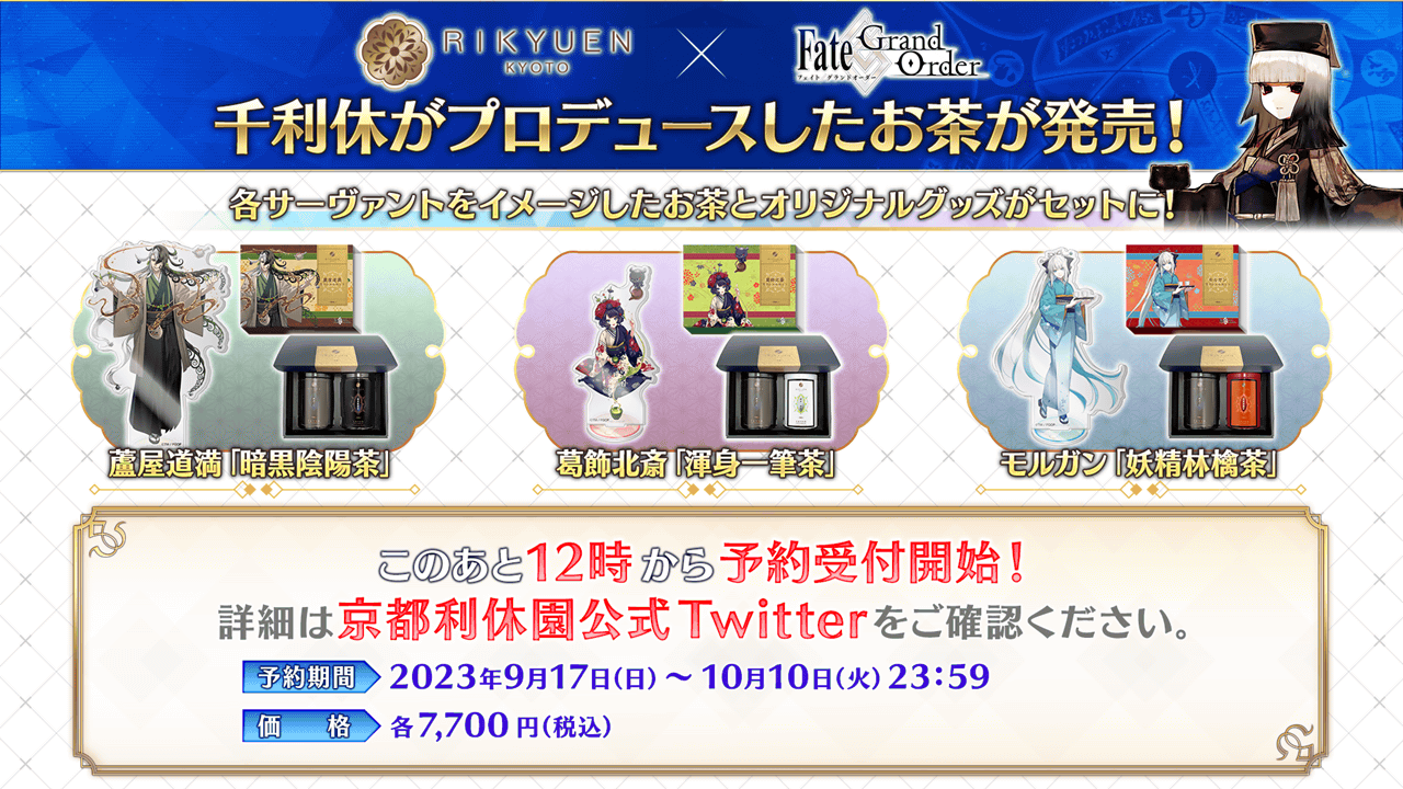 「京都利休園」 と「Fate/Grand Order」とのコラボレーションが決定いたしました。