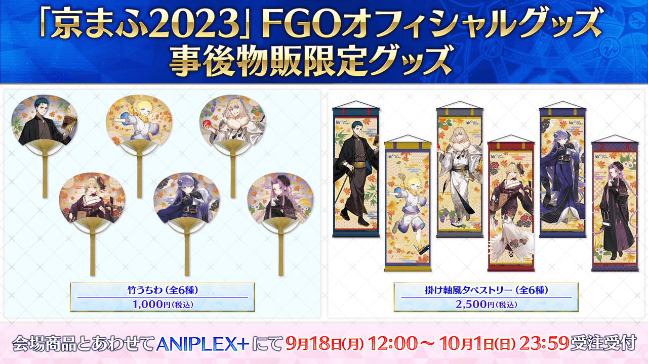 「京都国際マンガ・アニメフェア2023」にて販売されている「Fate/Grand Order」オフィシャルグッズが「ANIPLEX+」にて9月18日(月) 12:00よりWEB事後物販を開始いたします。