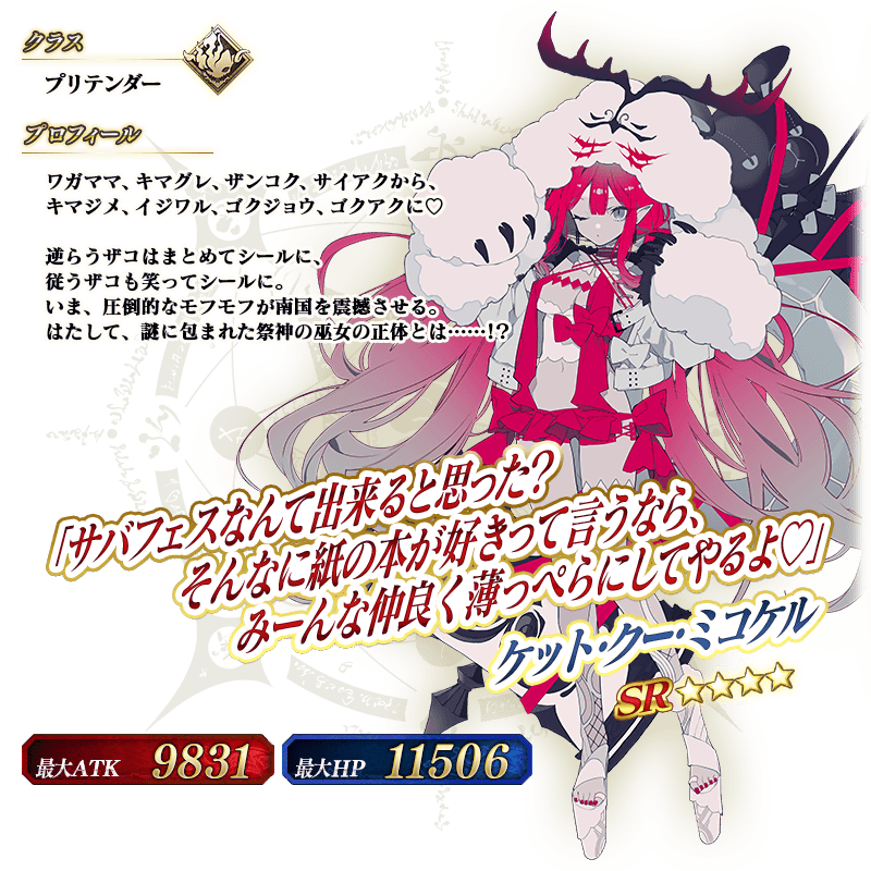 11回召喚では★4(SR)以上1枚確定と★3(R)以上のサーヴァント1騎確定!