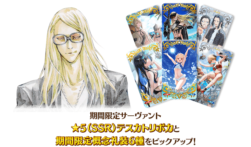 期間限定イベント「サーヴァント・サマー・フェスティバル2023!」の開幕を記念して、期間限定サーヴァント「★5(SSR)テスカトリポカ」と期間限定概念礼装6種をピックアップ!