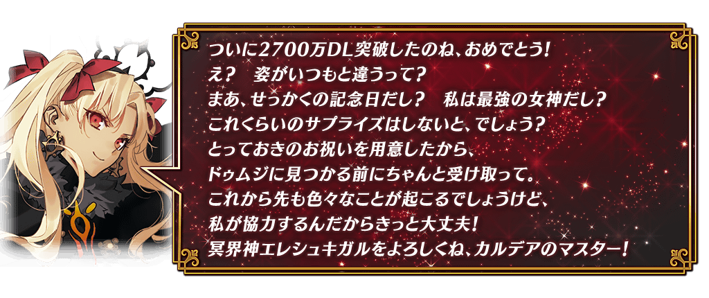 2700万DL突破を記念した特別なログインボーナスを実施いたします。
