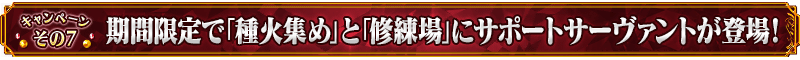 【サーヴァント育成&報酬ゲットのチャンス】 ■【恒常】マスターミッションに「スキル強化」ミッションを追加! ■期間限定でサーヴァント強化&概念礼装強化の大成功&極大成功率が2倍! ■期間限定で「種火集め」と「修練場」にサポートサーヴァントが登場!