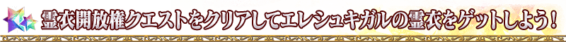 ※「★5(SSR)エレシュキガル」を未所持の場合、霊衣開放権の入手はできますが、霊衣開放はおこなえませんのでご注意ください。