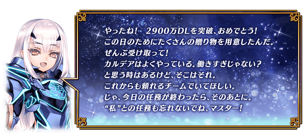 2900万DL突破を記念した、特別なログインボーナスを実施いたします。
