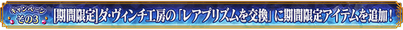 期間限定でダ・ヴィンチ工房の「レアプリズムを交換」に、下記のアイテムを追加いたします。