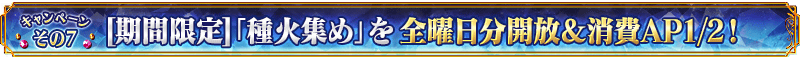 [期間限定]「種火集め」を全曜日分開放&消費AP1/2!