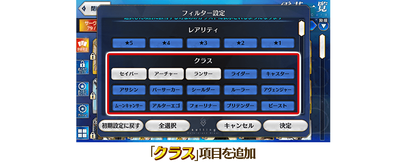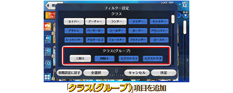 サーヴァントの「フィルター」に「クラス(グループ)」項目を追加!