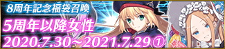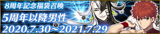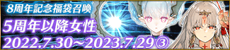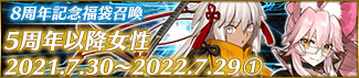 ※「8周年記念福袋召喚(5周年以降 男女×リリース順12分割)」から排出されるサーヴァントは、各召喚の対象となっているサーヴァントのみとなります。