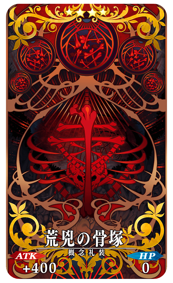 | 死牙の獣 | 「Lostbelt No.5 星間都市山脈 オリュンポス 神を撃ち落とす日」をクリア | 最大解放可能! 概念礼装 ★4(SR)荒兇の骨塚 |