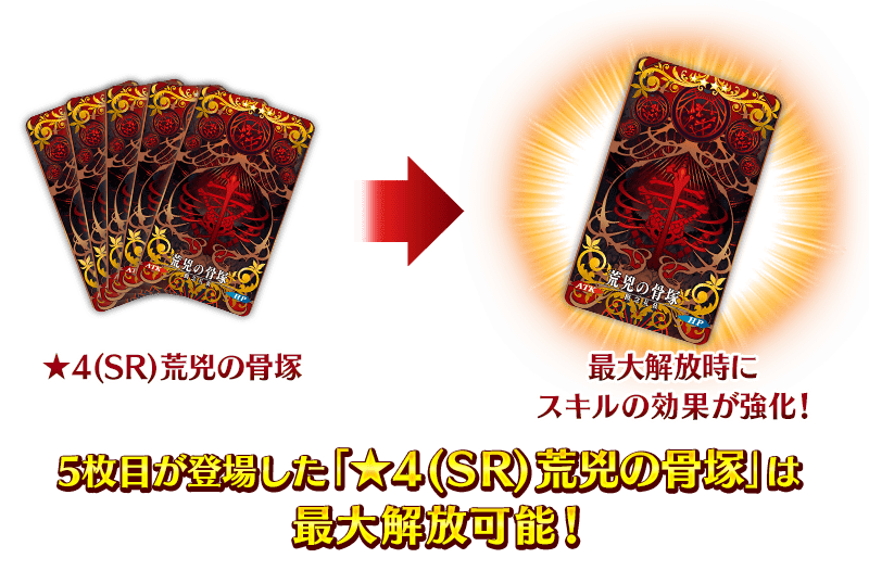 5枚目が登場した「★4(SR)荒兇の骨塚」は、最大解放することでスキルの効果を強化することができます。