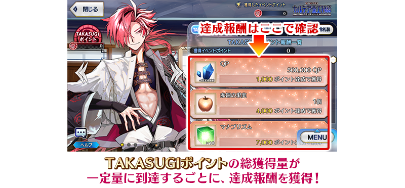 ※「TAKASUGIポイント」の総獲得量はイベントクエストでドロップした「TAKASUGIポイント」を獲得するとカウントされます。