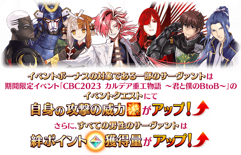 さらに、すべての男性サーヴァントはイベントクエストにおける「絆ポイント獲得量がアップ」の効果を得られます!