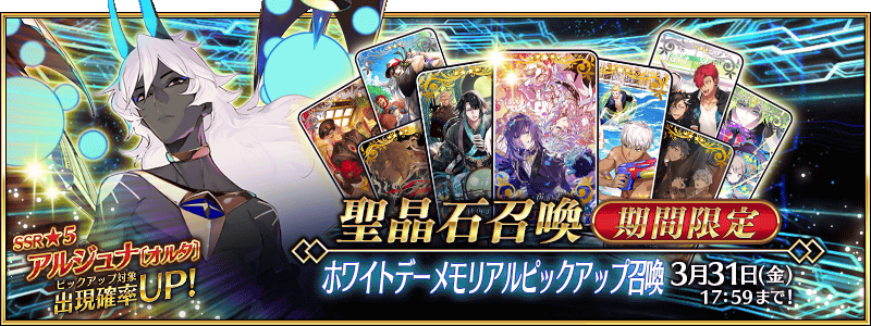 ※対象のサーヴァントとなっていても、本イベントのメインシナリオに登場しない場合があります。 ※3月12日(日) 17:00より、サーヴァント選択画面やサーヴァント強化画面などに、イベントボーナスフィルターが追加されております。イベントで活躍するサーヴァントのみを表示する便利な機能となりますので、こちらもあわせてご活用ください。 ※「★5(SSR)魔王信長(織田信長)」は「★5(SSR)織田信長」を霊基再臨第3段階にすることで名称が「★5(SSR)魔王信長」に変化します。
