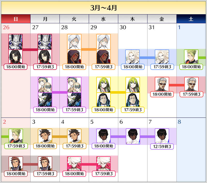 ・同時期に複数の期間限定ピックアップ召喚が開催されている場合は、各召喚個別(召喚画面のページごと)に召喚回数がカウントされます。また、日替りでピックアップ召喚の内容が切り替わる場合、それぞれ個別に召喚回数がカウントされます。一例を挙げると、各日0:00のタイミングで召喚内容が変更となるピックアップ召喚の場合、召喚内容が変更された時点で召喚回数のカウントがリセットされますのでご注意ください。