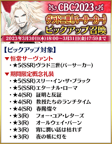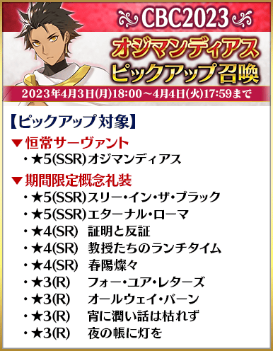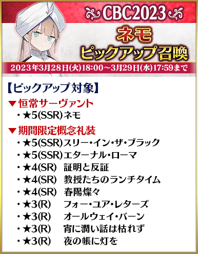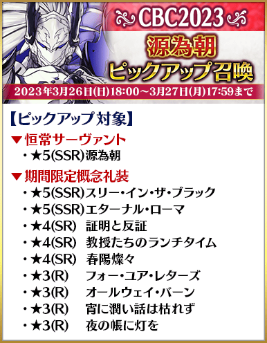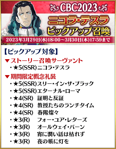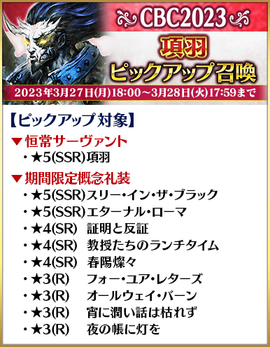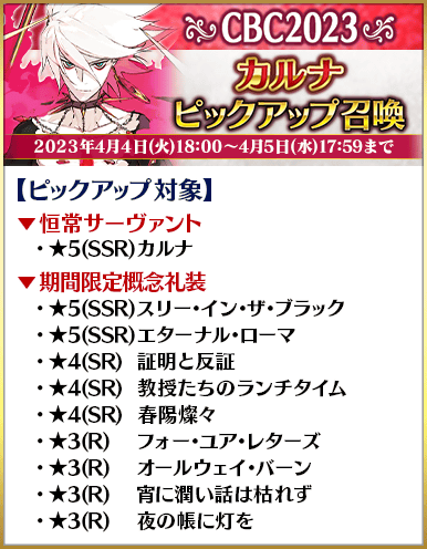 ◆「CBC2023 ピックアップ召喚」スケジュール◆