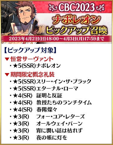 ◆「CBC2023 ピックアップ召喚」のご注意◆