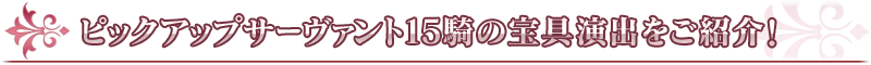 本召喚にてピックアップされている、サーヴァント15騎の宝具演出を紹介いたします!