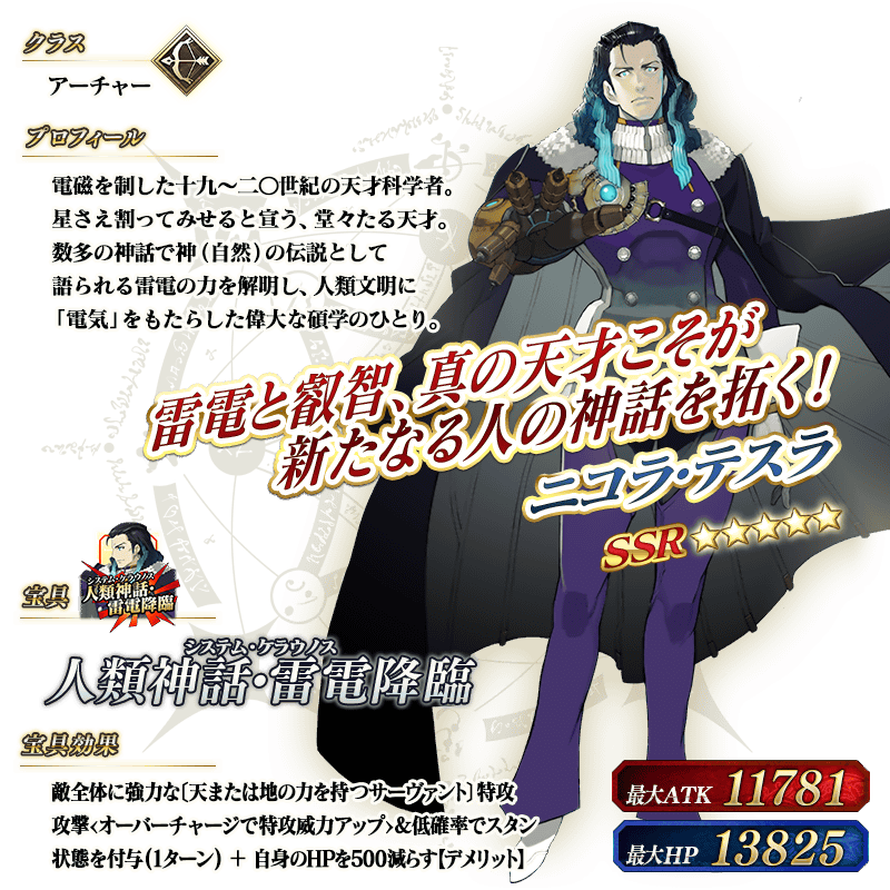 ※上記の「★5(SSR)ニコラ・テスラ」のイラストは霊基再臨第2段階のものです。