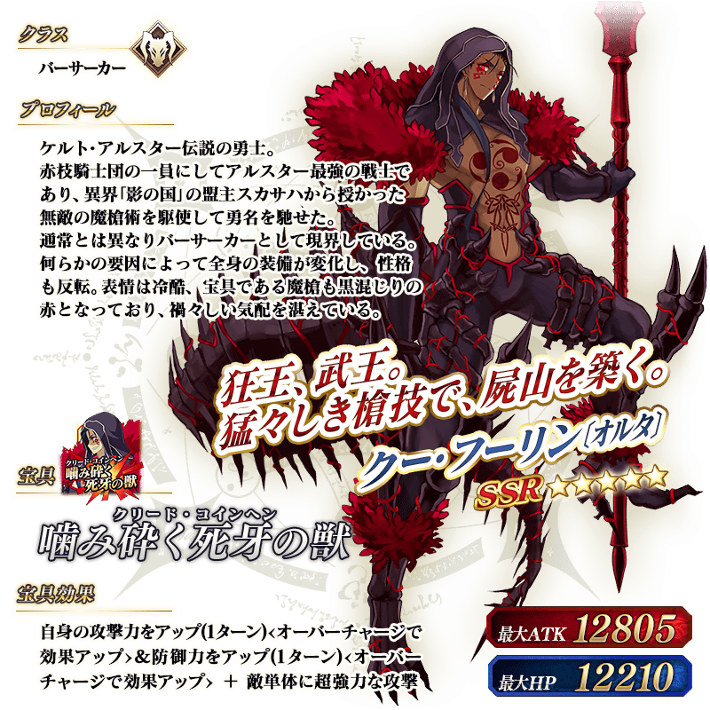 ※上記の「★5(SSR)クー・フーリン〔オルタ〕」のイラストは霊基再臨第2段階のものです。