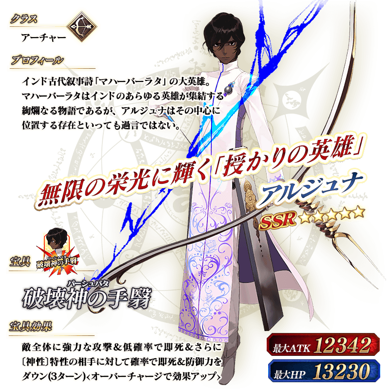 ※上記の「★5(SSR)アルジュナ」のイラストは霊基再臨第2段階のものです。
