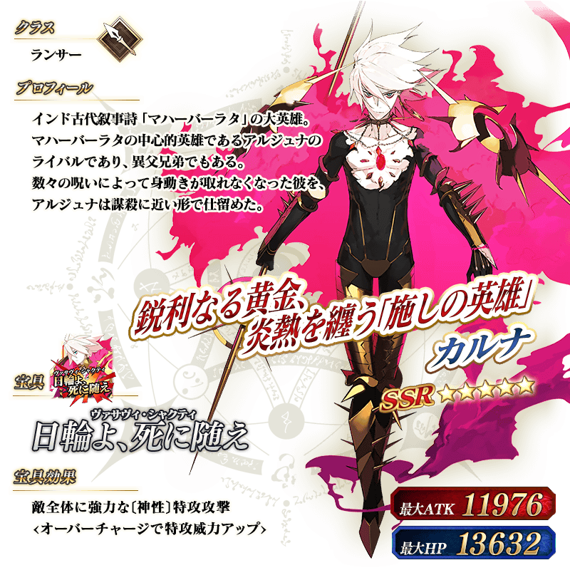 ※上記の「★5(SSR)カルナ」のイラストは霊基再臨第2段階のものです。