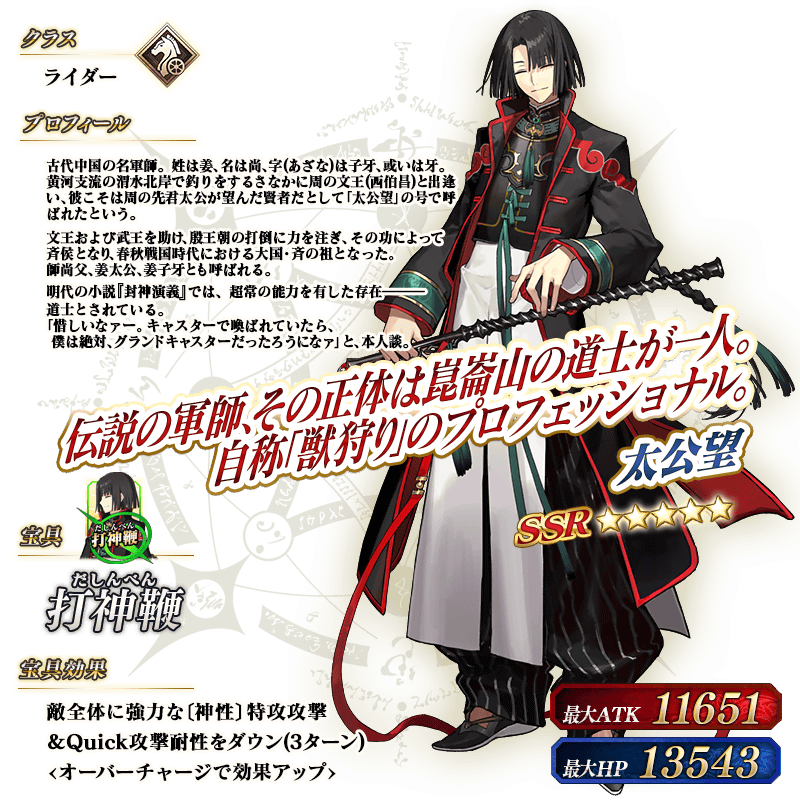 ※上記の「★5(SSR)太公望」のイラストは霊基再臨第2段階のものです。