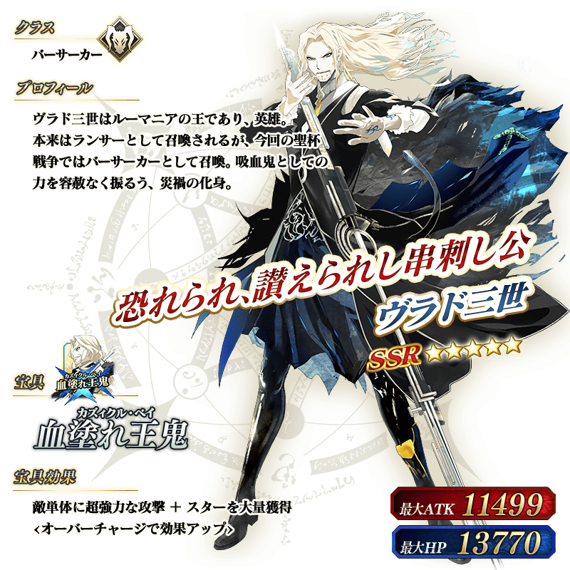 ※上記の「★5(SSR)ヴラド三世(バーサーカー)」のイラストは霊基再臨第2段階のものです。
