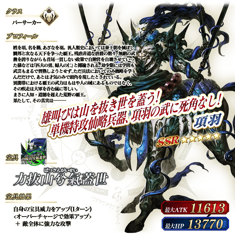 ※上記の「★5(SSR)項羽」のイラストは霊基再臨第2段階のものです。