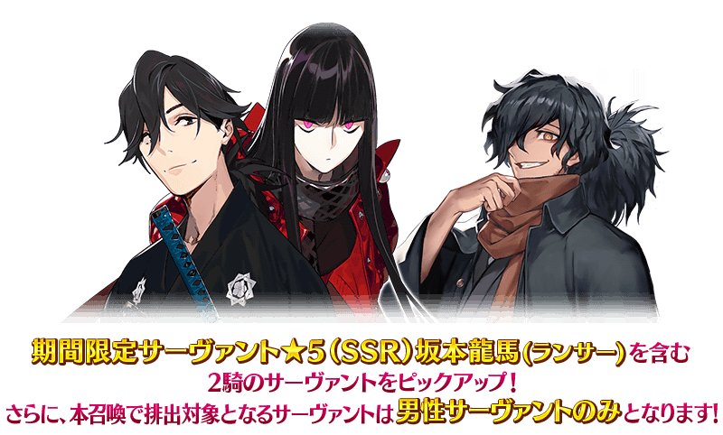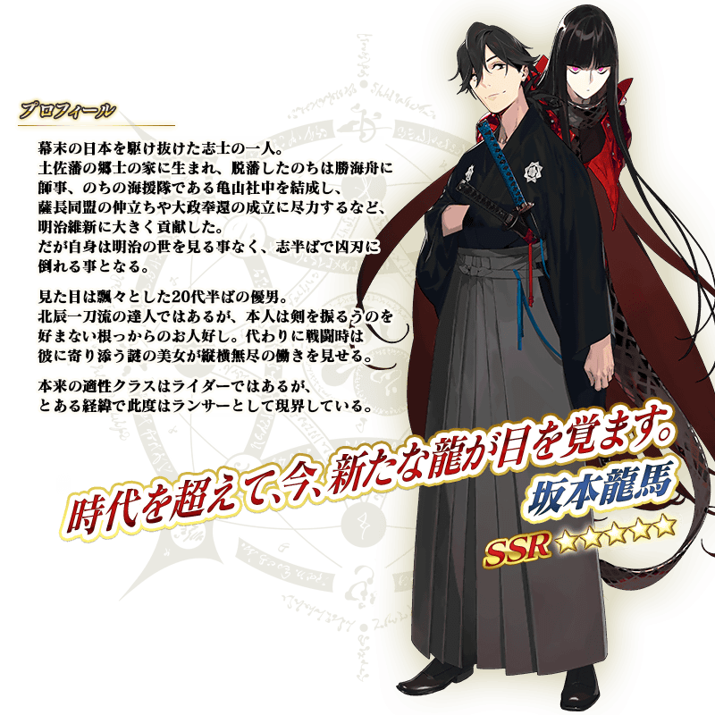 本召喚にてピックアップされている、「★5(SSR)坂本龍馬(ランサー)」の宝具演出を紹介いたします!