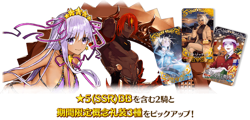 期間限定イベント「雪原のメリー・クリスマス2023 ~7days / 8years Snow Carol~」の開幕を記念して、「★5(SSR)BB」を含む2騎と期間限定概念礼装3種をピックアップ!