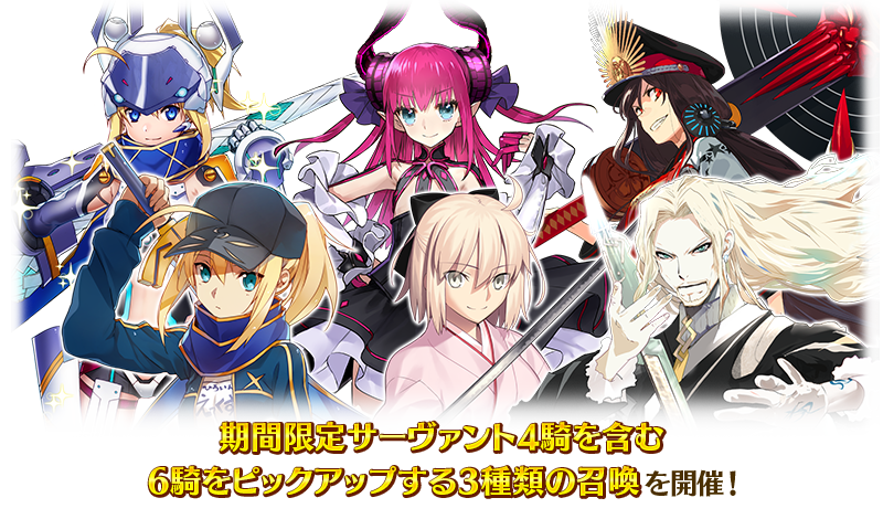 ※下記の期間限定サーヴァントは、ピックアップ対象となっている召喚からのみ排出されます。また、ピックアップ期間終了後、ストーリー召喚には追加されません。