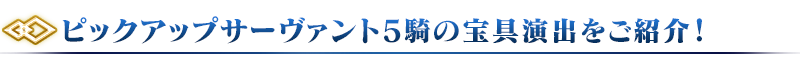 本召喚にてピックアップされている、サーヴァント5騎の宝具演出を紹介いたします!