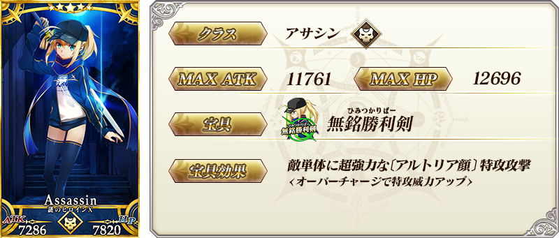 ※上記の「★5(SSR)謎のヒロインX」のイラストは霊基再臨第2段階のものです。