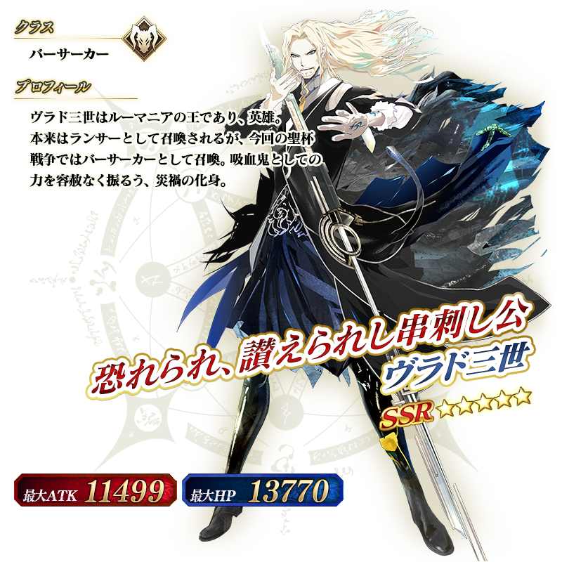 ※上記の「★5(SSR)ヴラド三世(バーサーカー)」のイラストは霊基再臨第2段階のものです。