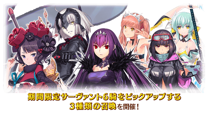 ※下記の期間限定サーヴァントは、ピックアップ対象となっている召喚からのみ排出されます。また、ピックアップ期間終了後、ストーリー召喚には追加されません。