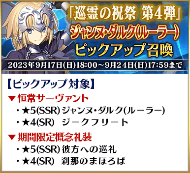 ◆『「巡霊の祝祭 第4弾」ピックアップ召喚』スケジュール◆