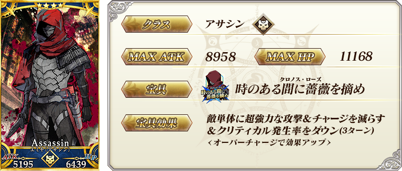 ※上記の「★4(SR)エミヤ〔アサシン〕」のセイントグラフは霊基再臨第2段階のものです。