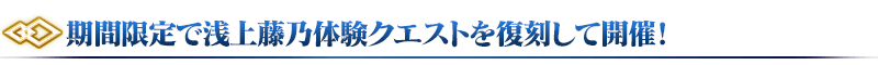 ◆浅上藤乃体験クエスト開催期間(1週間)◆