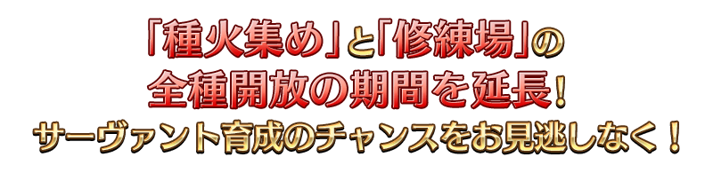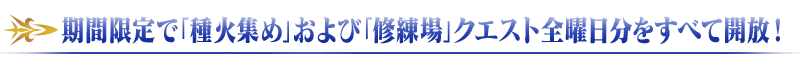 「リリース3000日突破キャンペーン」で実施中の「種火集め」および「修練場」を期間限定で全種開放の期間を延長いたします!