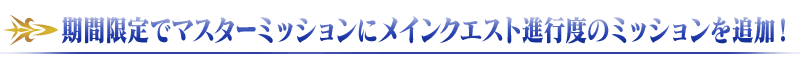 下記の期間中、マスターミッション(限定ミッション)に、「聖杯戦線開幕直前」ミッションを追加いたします。