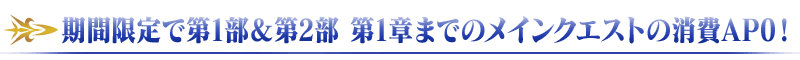 下記の期間中、第2部 第1章「Lostbelt No.1 永久凍土帝国 アナスタシア 獣国の皇女」までのメインクエストの消費APが0になります!