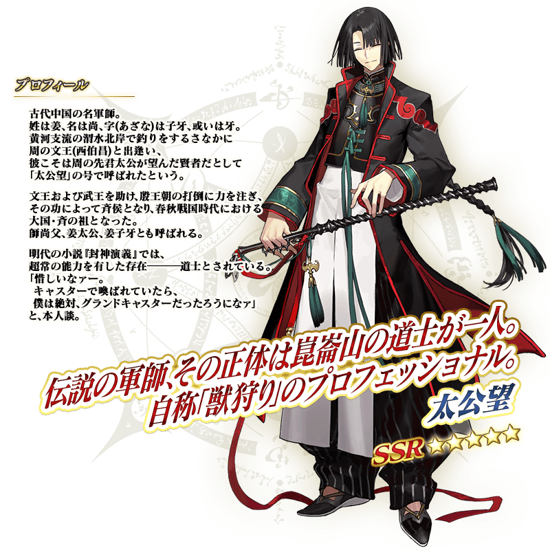 ※上記の「★5(SSR)太公望」のセイントグラフおよびイラストは霊基再臨第2段階のものです。