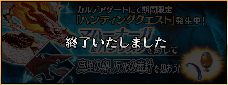 | 9/6(水) 18:00~9/8(金) 12:59に出現するいずれかのハンティングクエストを2回クリアせよ |