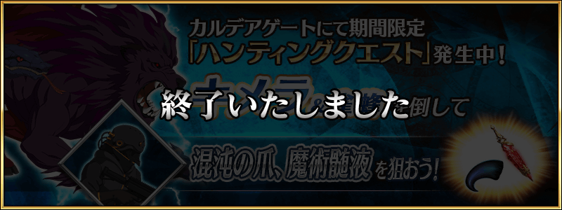 開催期間中、特定のエネミーを対象としたハンティングクエストが日替りでカルデアゲートに出現します。