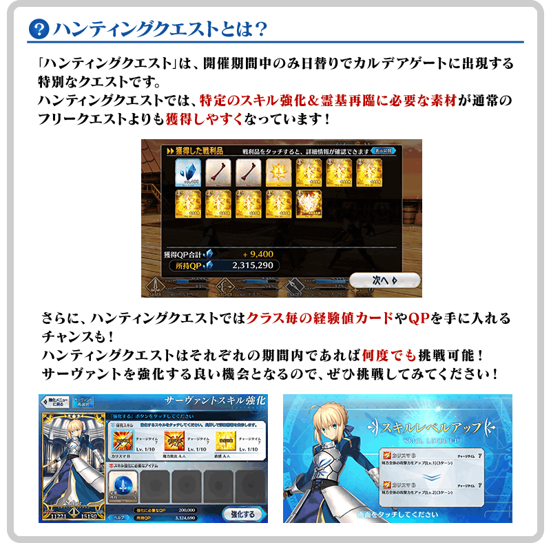 スキル強化&霊基再臨に必要な素材を、狙って獲得しやすいクエスト「ハンティングクエスト」開催!