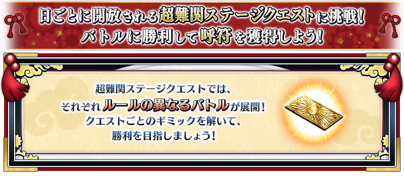 また、日ごとに開放される超難関ステージクエストをクリアすることで、呼符を獲得できます。