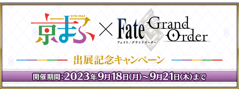 「京都国際マンガ・アニメフェア(京まふ)2023」への出展を記念して、期間限定サーヴァント2騎を含むサーヴァント3騎をピックアップする3種類の召喚を開催!